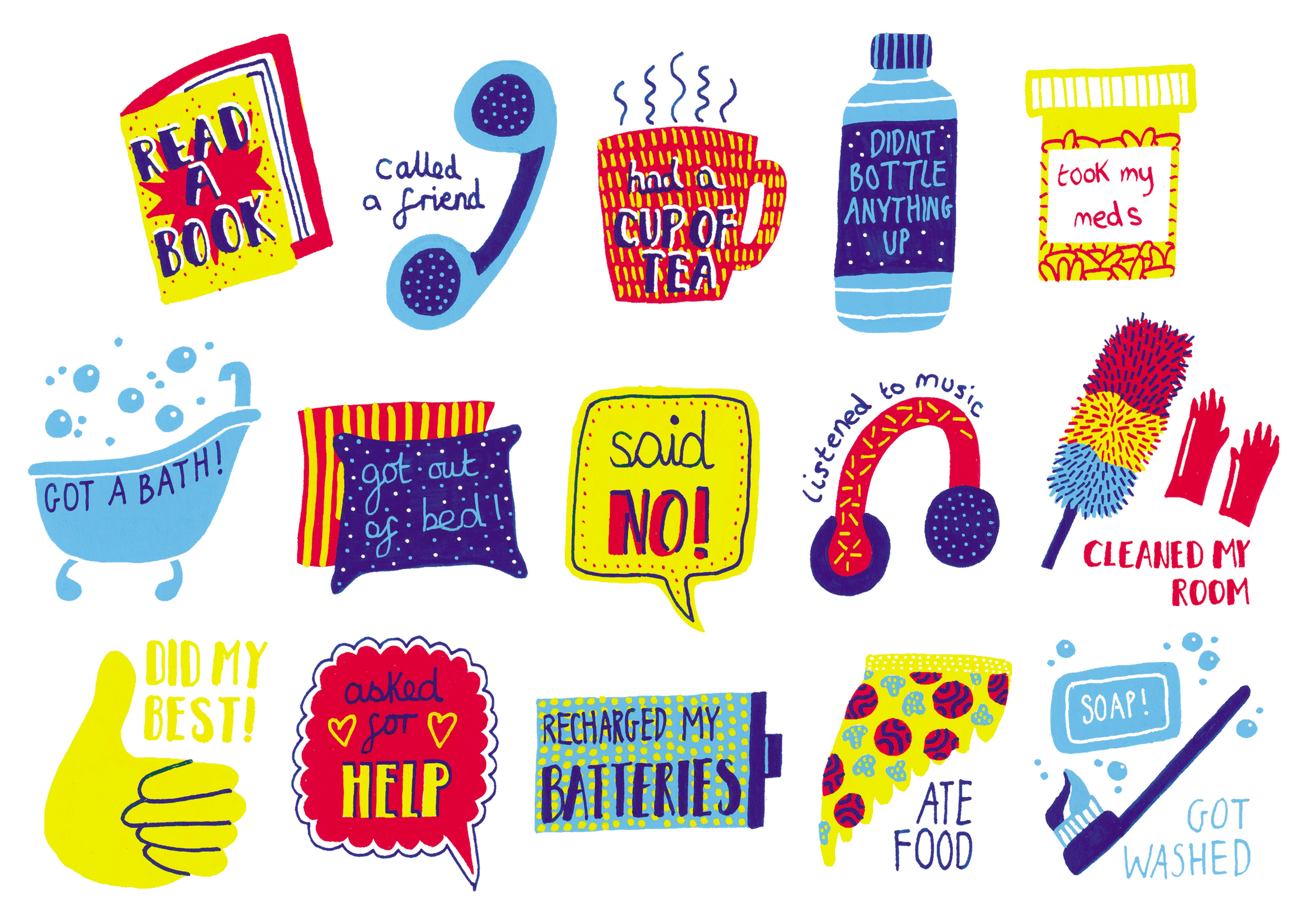 I was commissioned by Comics Youth to design the cover for their Self-Care Zine in early 2018. Alongside this, I was also commissioned to create some of the stickers and badges that came free with the zine.