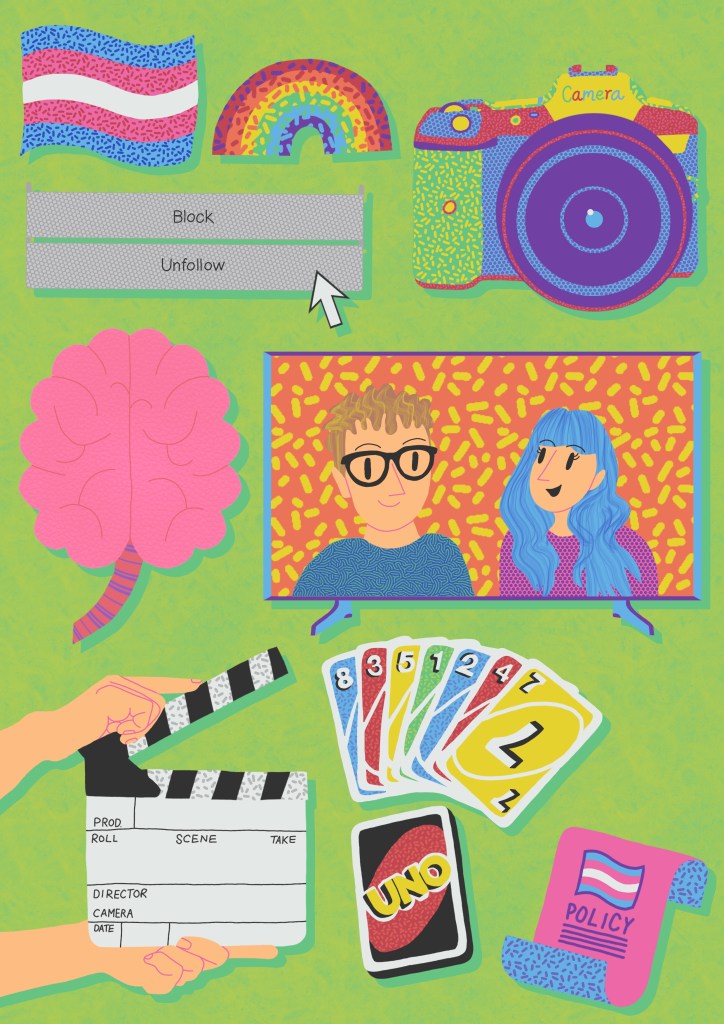 For LGBT History Month 2021, I was commissioned to create artwork for a project that GYRO and the Museum of Liverpool were running, where they got the young people who attend GYRO to interview local activists. The activists each chose an object that meant a lot to them to put into a virtual time capsule. I was asked to create portraits of each activist, create visual minutes and draw the objects that each activist picked for the time capsule. As it was a lot of work, I took a different approach and did digital art on my iPad instead. You can see the work below.