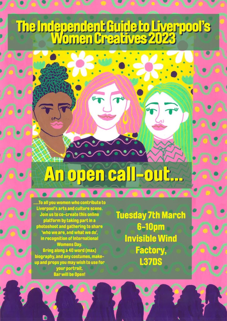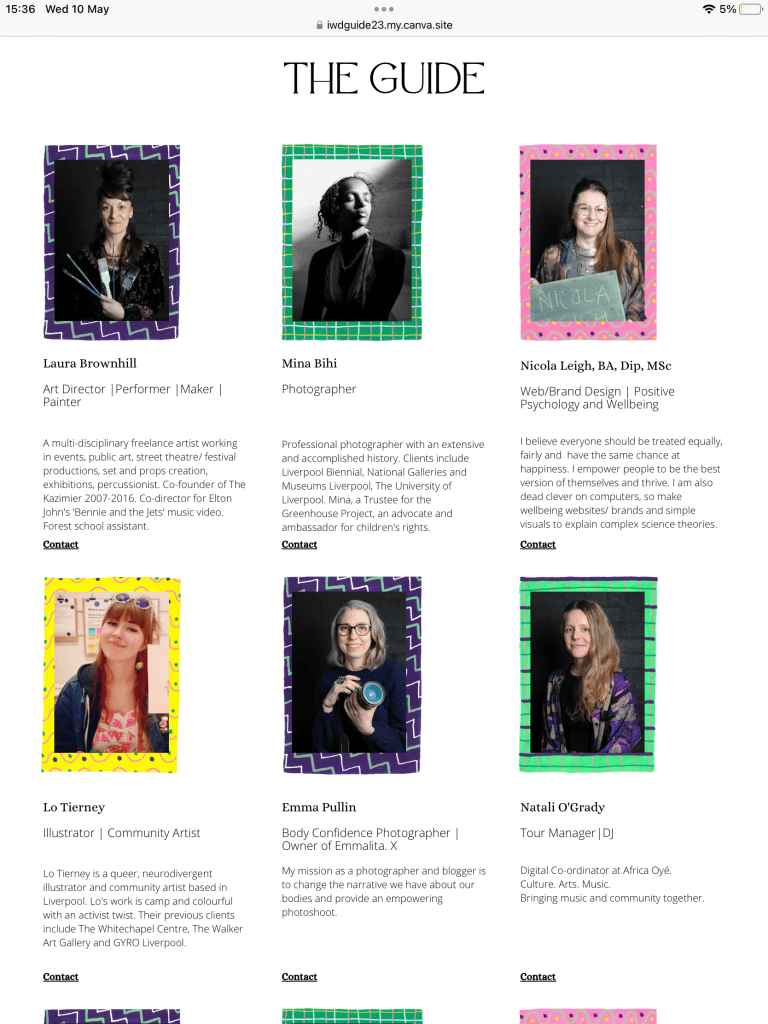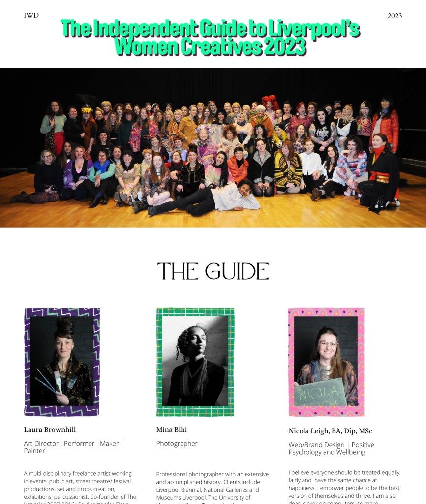 For International Women’s Day 2023, I was asked to create a poster for the photographing event at the Invisible Wind Factory. The result from this event was an online directory for women creatives based in Liverpool. For the website I was also asked to create borders for the website to highlight each photograph. You see all of the work below, including screenshots of the website.