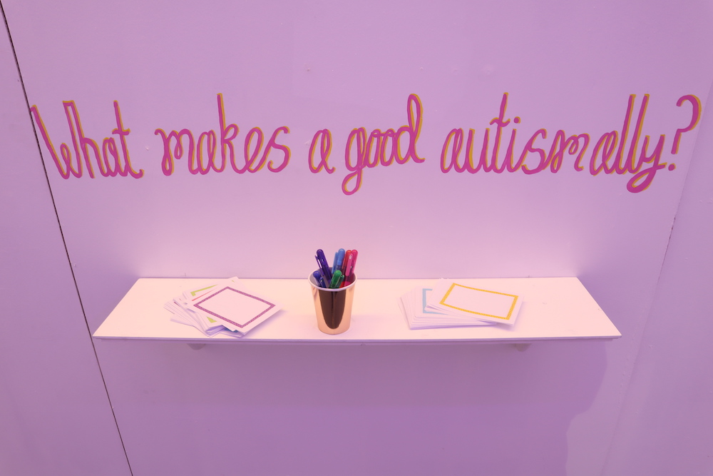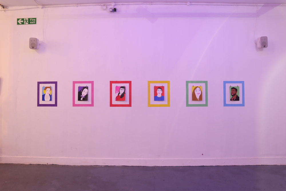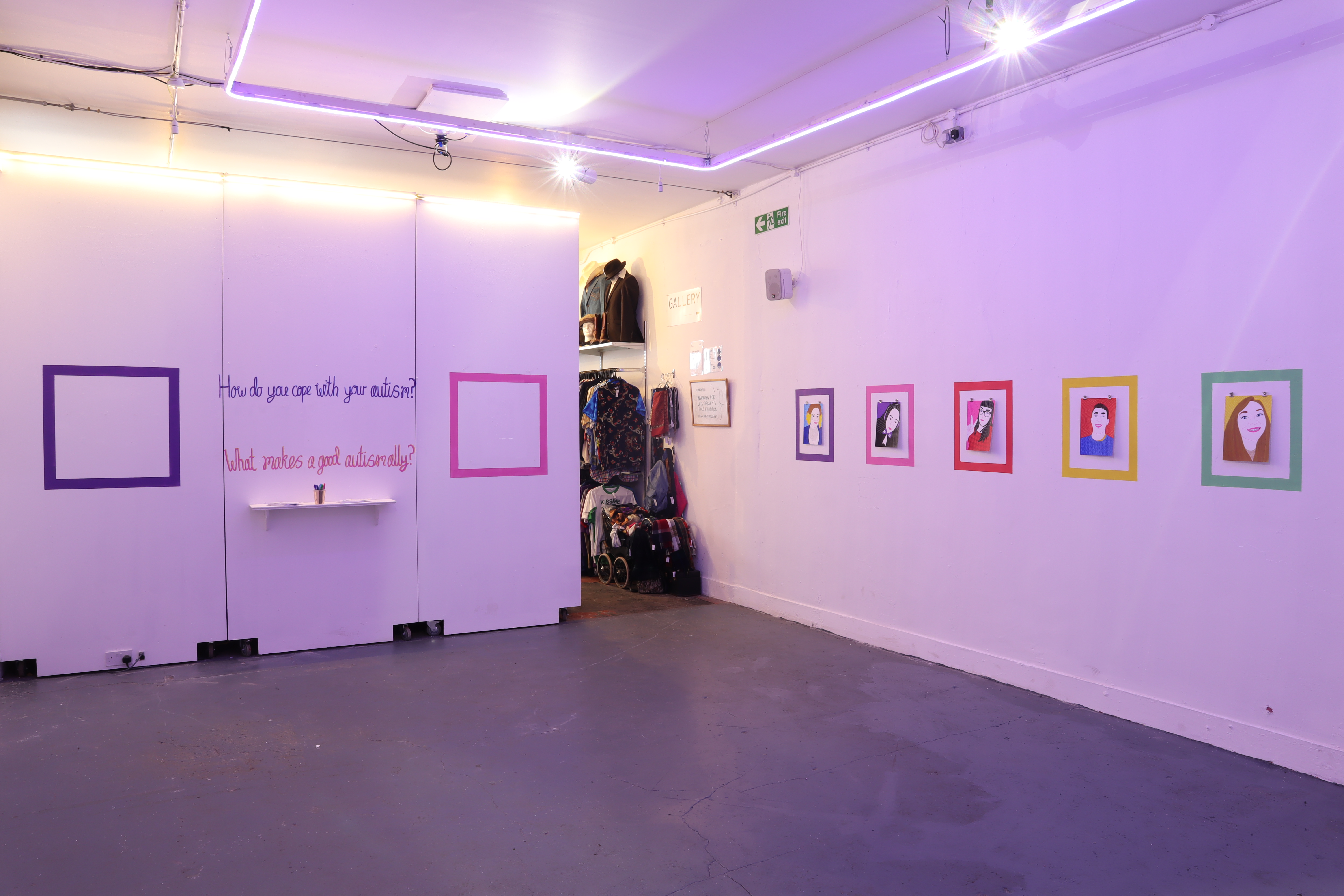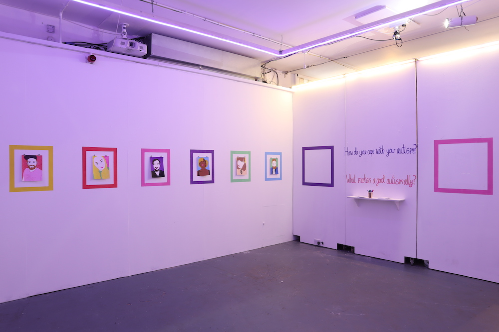 From March to July 2020, I had my first ever solo exhibition at Output Gallery called ‘Spectrum’. The show included hand-drawn portraits of autistic people, including myself. The exhibition aimed to bring people together and start a conversation between autistic people and allistic people. As well as having the portraits up, I also included a space in the show where visitors could contribute their thoughts to the questions on the wall; ‘What advice would you give on coping with autism?’ and ‘What makes a good autism ally?’.