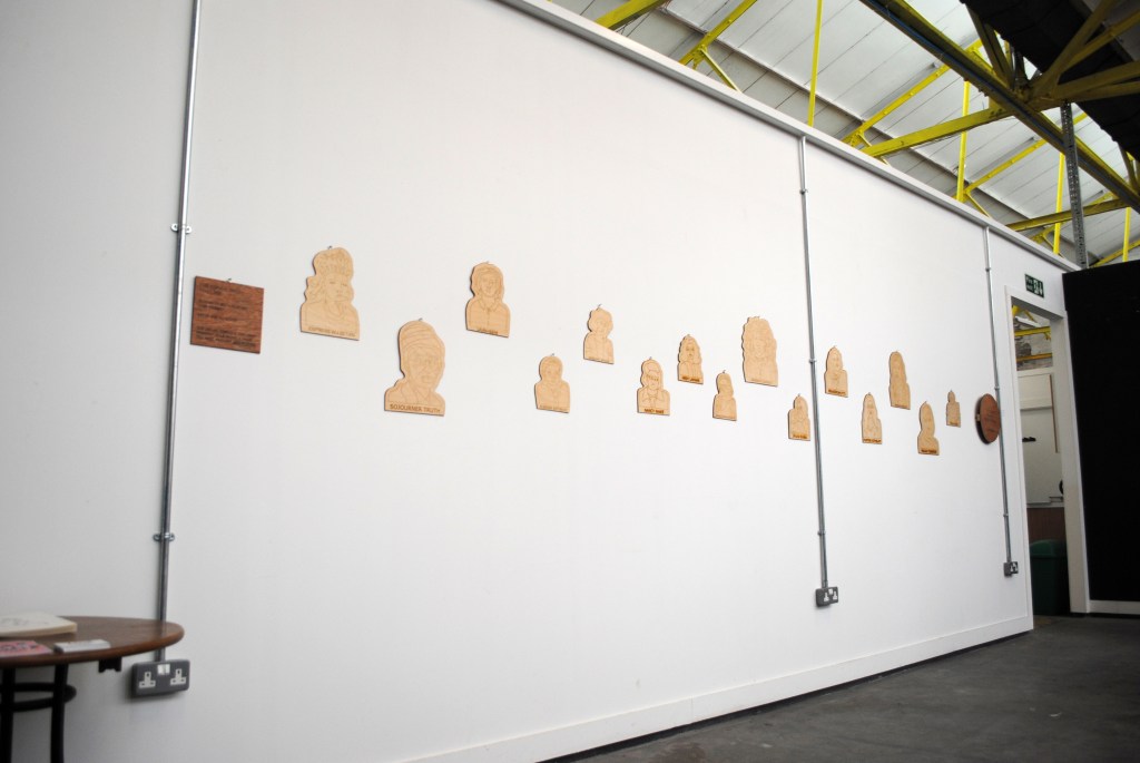 As part of Light Night 2017, artist Elizabeth Brownsword and I held an exhibition entitled The Female Gaze: TimeLine, which was a visual, interactive timeline celebrating female role models who aren’t as well-known as their male peers despite achieving amazing things in their lives. Each portrait is laser-cut with the help of DoES Liverpool.